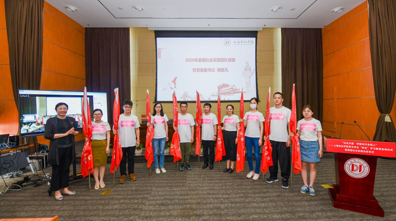 此次暑期社会实践,全校预计5000名左右的学生组成400支团队,通过线上和线下相结合的方式,参与到今年的暑期社会实践活动中去。面对疫情的冲击,本次暑期社会实践活动鼓励青年学子从自身视角出发,关注社会现象和问题,充分利用网络技术,开展实践活动。校党委副书记杨若凡为暑期社会实践团队授旗。各二级学院团总支老师代表学院暑期社会实践团队接旗。