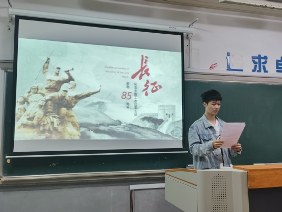电气学院团总支组织学生干部、入党积极分子观看了长征系列电影《血战湘江》,并学唱歌曲《七律·长征》,研究生第一党支部的张勇谈了学习感想:“我们从红军长征中收获了坚强、智慧、勇敢、自信、顽强、团结......那么,我们就要将这些品德付诸与祖国的建设中去,把自己的成长同祖国前途命运紧密地联系起来,立爱国之志,成报国之材。”商学院党委、外国语学院分别组织师生重温长征故事,通过开班会、讲故事等形式,讲述红军在中国共产党领导下艰苦卓绝的长征历程,带领大家共同回顾那段炮火硝烟的岁月。材料学院编排、录制《重走长征路》主题话剧并开展线上线下展播,话剧还原了长征时期的艰苦奋斗和一步步走向胜利的过程,重温红军长征艰苦卓绝的光荣历史,缅怀革命先辈的光辉足迹,并组织观看《长征》纪录片。“作为参演者,这一次的话剧让我学到了很多。我觉得作为大学生,应该好好的学习历史知识,更应该好好学习本领,继承和发扬长征精神,将来更好地建设我们的祖国。”参演学生说。高职学院团总支开展“忆往昔岁月,颂长征精神”诗歌朗诵比赛,一名又一名同学上台,用诗歌赞颂了红军长征战士们乐于吃苦、不惧艰难的革命乐观主义,勇于战斗、无坚不摧的革命英雄主义,重于求实、独立自主的创新胆略,善于团结、顾全大局的集体主义。