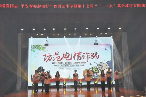 参赛学院表演了以爱党爱国、爱校园守平安为主题的朗诵节目,大学生艺术团也带来了创意纷呈、种类丰富的艺术节目。活动现场热情高涨,同学们用歌舞明志、用艺术传情,以形象生动的肢体语言、超高难度的技巧动作、宛如天籁的美妙歌声,诠释出肆意灿烂的青春之光,展现了电机学子健康向上的精神风貌。