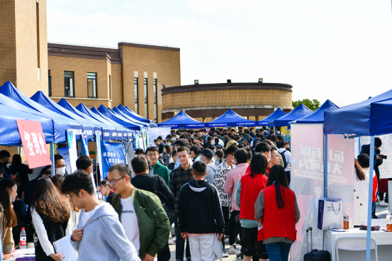 一是线下搭建就业平台。每年举办两场大规模招聘会,入驻企业达250多家。年初以来,举办了2021届毕业生校园春季双选招聘会、乐业上海-2021年大中城市联合招聘会、暑期实习生招聘会暨应届毕业生择业双选会、2021年临港新片区秋季校园招聘会等活动,数百家企业应邀参会,前来的大型央企、科研院所、先进制造业、互联网+、现代金融及服务业等单位为学生提供了各种类型和层次的多样选择,涉及重装备制造、港口、航天、船舶、半导体、专业设备、化工、汽车、金融、物流、快速消费品、餐饮、IT物联网、房产物业、商贸、教育培训等多个领域。累计提供上万个岗位,吸引了万余人次的学生前来现场。