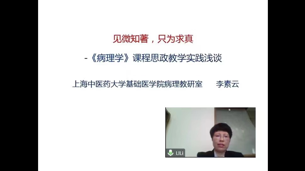 应邀参会的上海中医药大学基础医学院李素云老师围绕探索《病理学》见微知著、只为求真的思政案例,通过讲述“病理学家卞修武院士疫情期间赴武汉开展尸体解剖病理检查的先进事迹”,引导同学们更深刻地理解了新时代中国共产党人民观的新境界--“人民至上、生命至上”。
