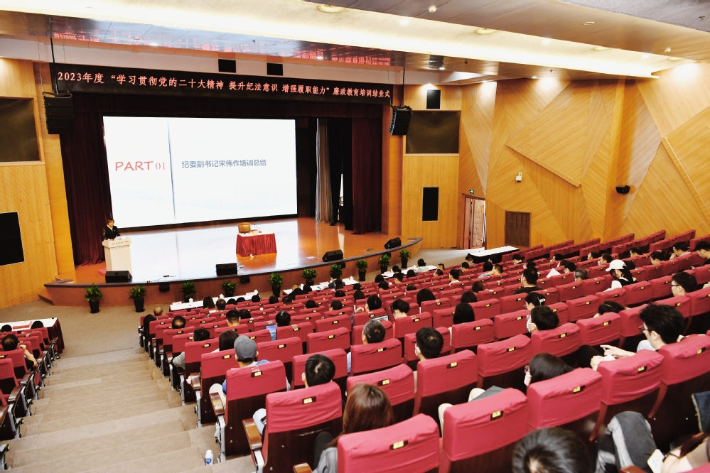 5月25日下午,2023年度“学习贯彻党的二十大精神 提升纪法意识 增强履职能力”廉政教育培训结业式暨专题党课“把党的伟大自我革命进行到底”在临港校区小剧场举行。校党委副书记、纪委书记刘彬参加结业式并作专题党课,纪委副书记兼纪监综合办公室、纪检监察室主任宋伟主持,廉政教育培训学员及电气学院党员代表共计160余人参加。