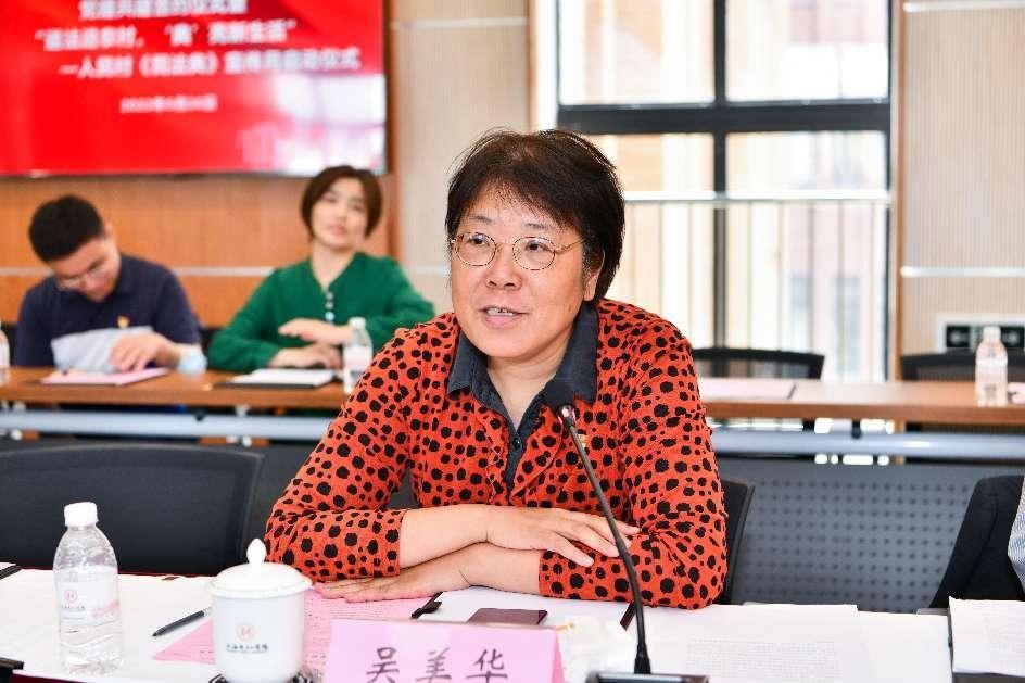 党委组织部部长吴美华介绍了上海电机学院70年建校历史、办学特色、办学成就和党建基本情况,表示将坚定不移地学习贯彻习近平总书记对上海党建工作的要求,扎根临港新片区,做好党建联建工作、科研反哺社会、学生就业工作、志愿服务工作,积极服务临港新片区,助推临港新片区发展。她希望双方以《民法典》宣传月活动为新的契机,加强“优势互补、资源共享、校城共赢、共同发展”,继续以学习宣传贯彻党的二十大精神为引领,推动习近平新时代中国特色社会主义思想进社区、进农村,深挖红色因素,打造品牌项目,持续开展党建共建,提升党建共建工作质量,推进“大思政课”建设。